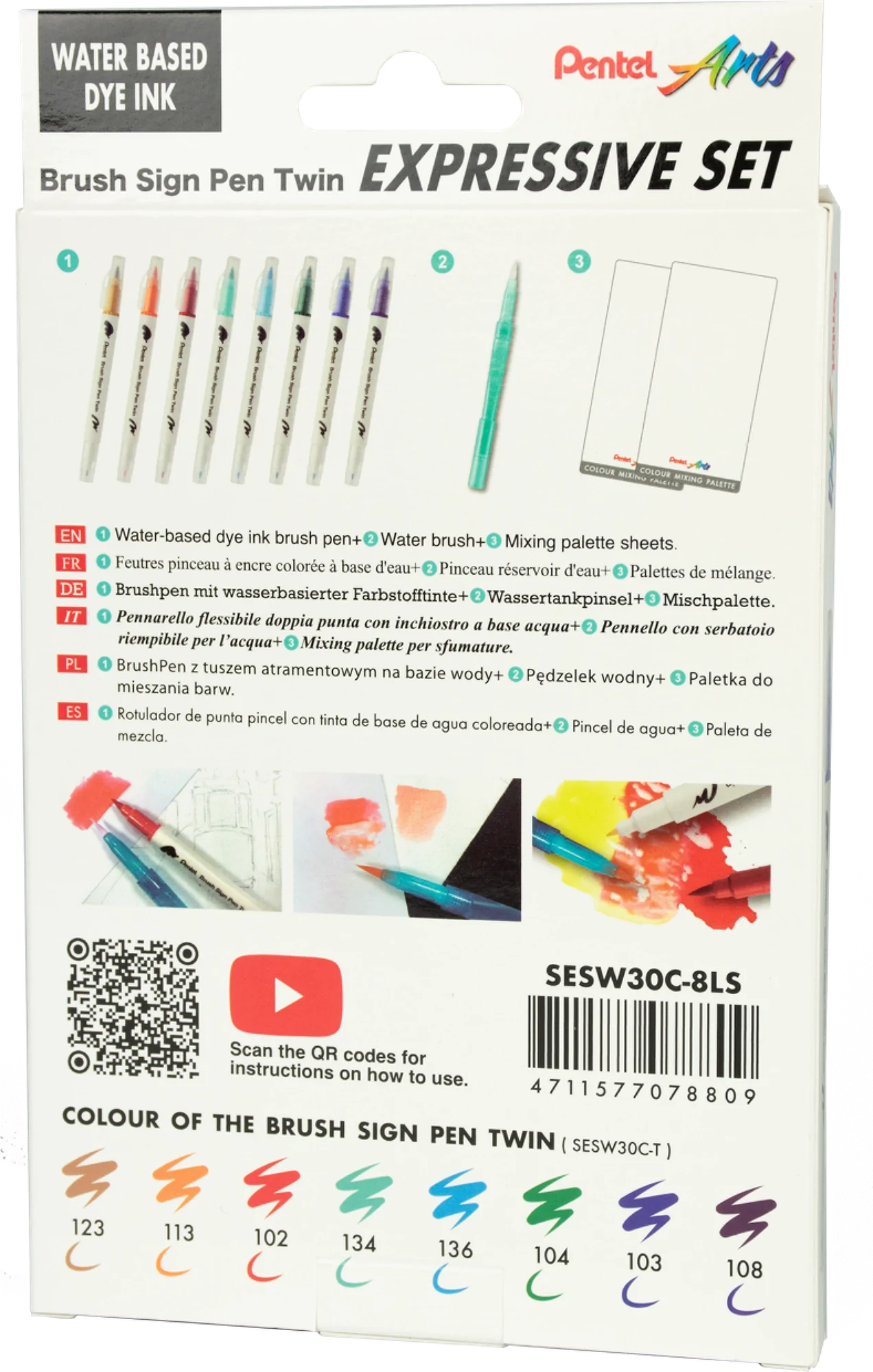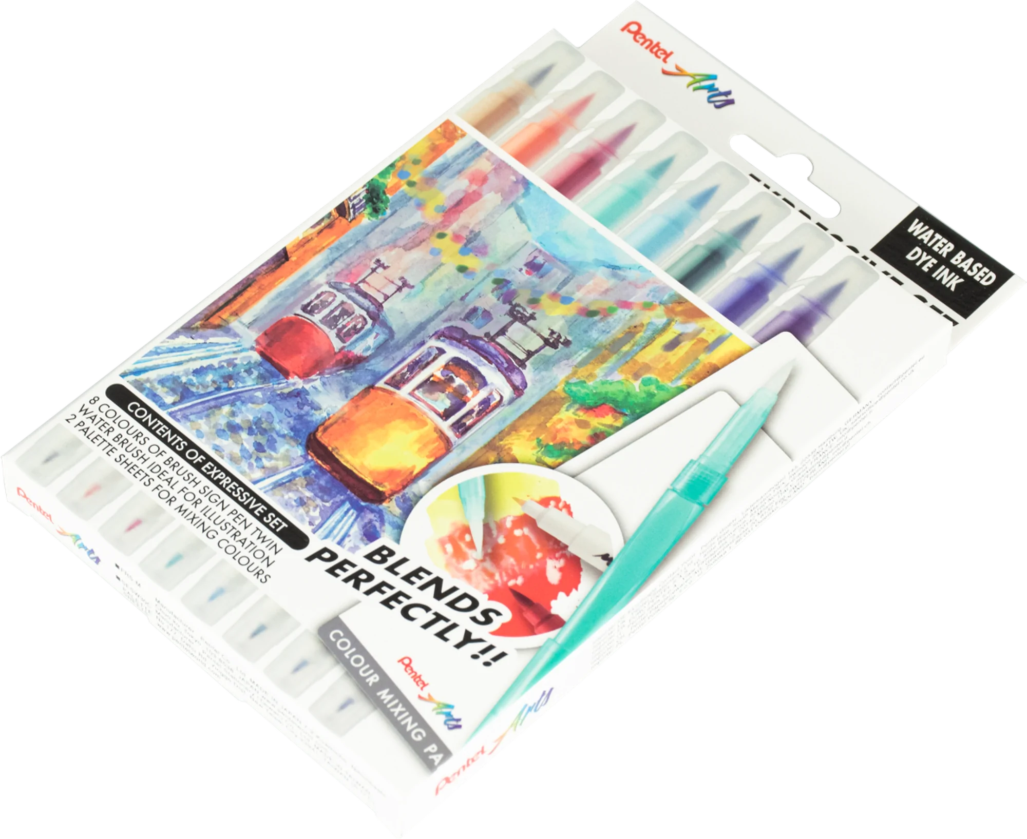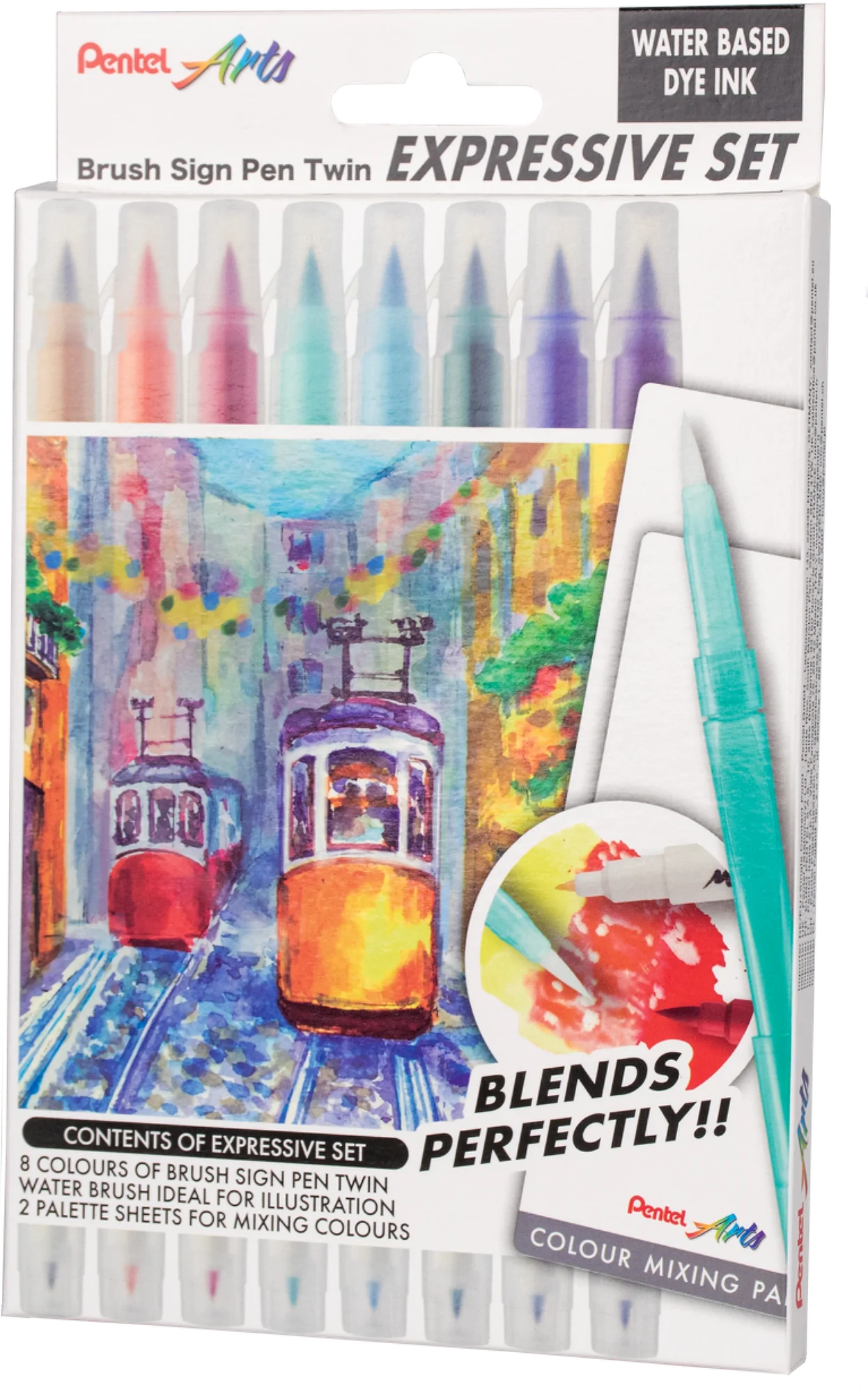 • 8 dwustronnych pisaków pędzelkowych – cienka końcówka do precyzyjnych detali i pędzelkowa do płynnych, ekspresyjnych pociągnięć.